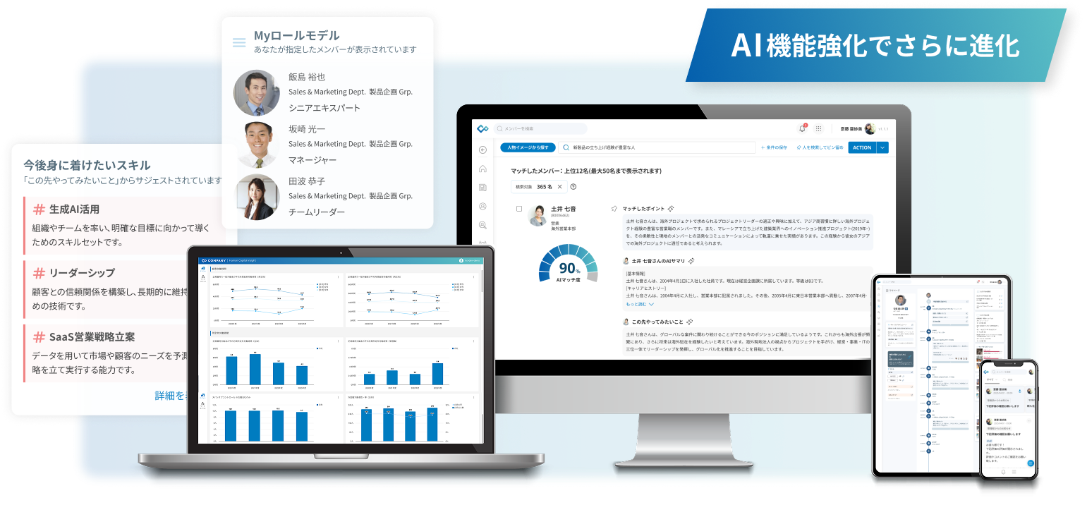 組織全体でタレントマネジメントを促進するため、人事はもちろん、従業員や経営層にも使いやすいUI/UXと機能群です。