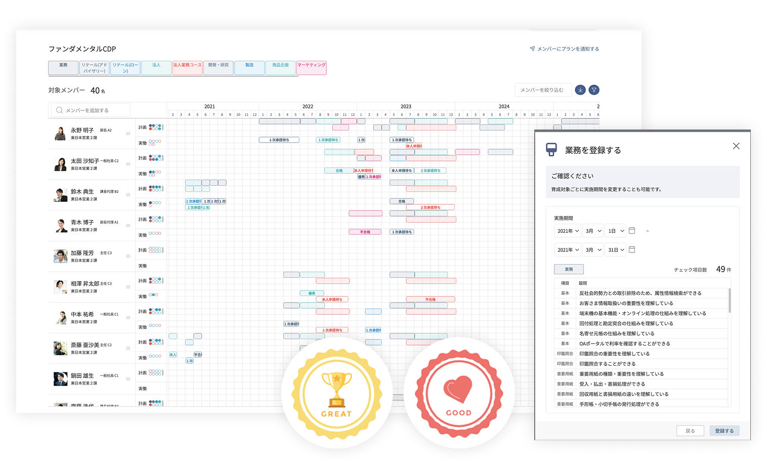 2. 育成スケジュールや状況を可視化することで、行員の自発性が促されるだけではなく、状況が把握しやすくなり上司や先輩からフォローやサポートができる体制になりました。