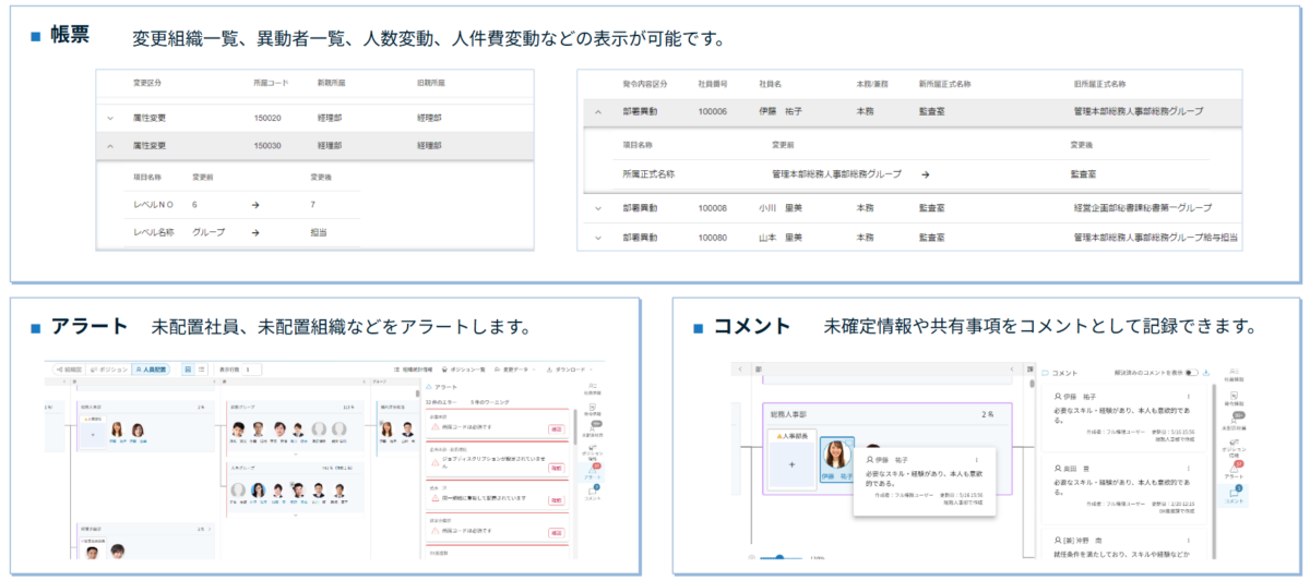 ▼CTM2.0イメージ画像 リスト作成やアラート、コメント機能などで異動業務の効率化を支援