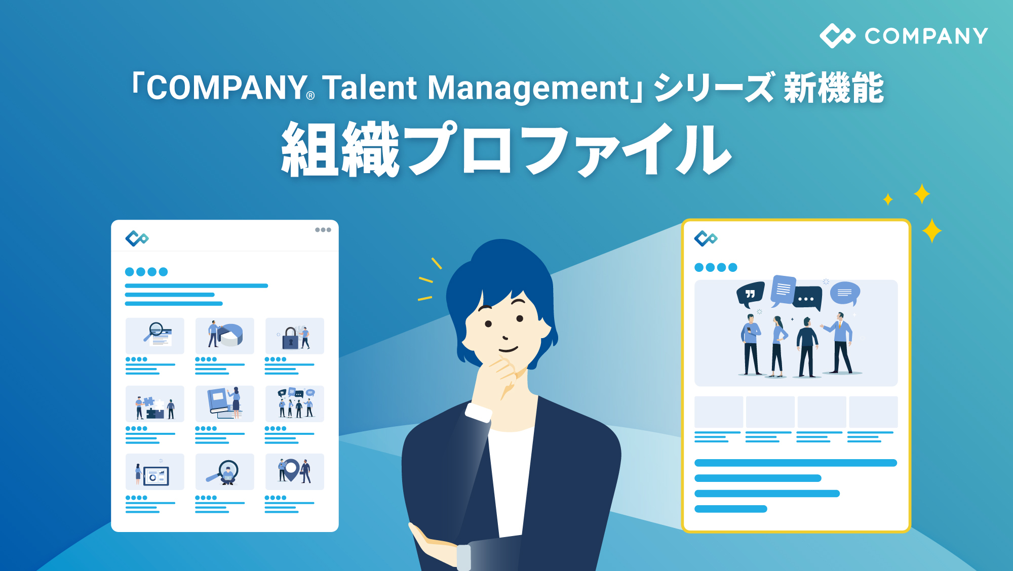 国内大手法人の3社に1社が利用する統合人事システム「COMPANY」シリーズが提供する、日本法人固有の組織ニーズへ最適化したタレントマネジメントシステムです。人的資本経営に欠かせない人材の可視化、評価、育成、異動・配置、要員計画といったあらゆる機能を網羅しています。HR特化型生成AIの搭載と、現場の従業員から経営層までが迷わず操作できるUI/UXにより、はたらくすべての人が活用できる「COMPANY Talent Management」シリーズとして、組織の意思決定と個人の成長を同時に加速させます。