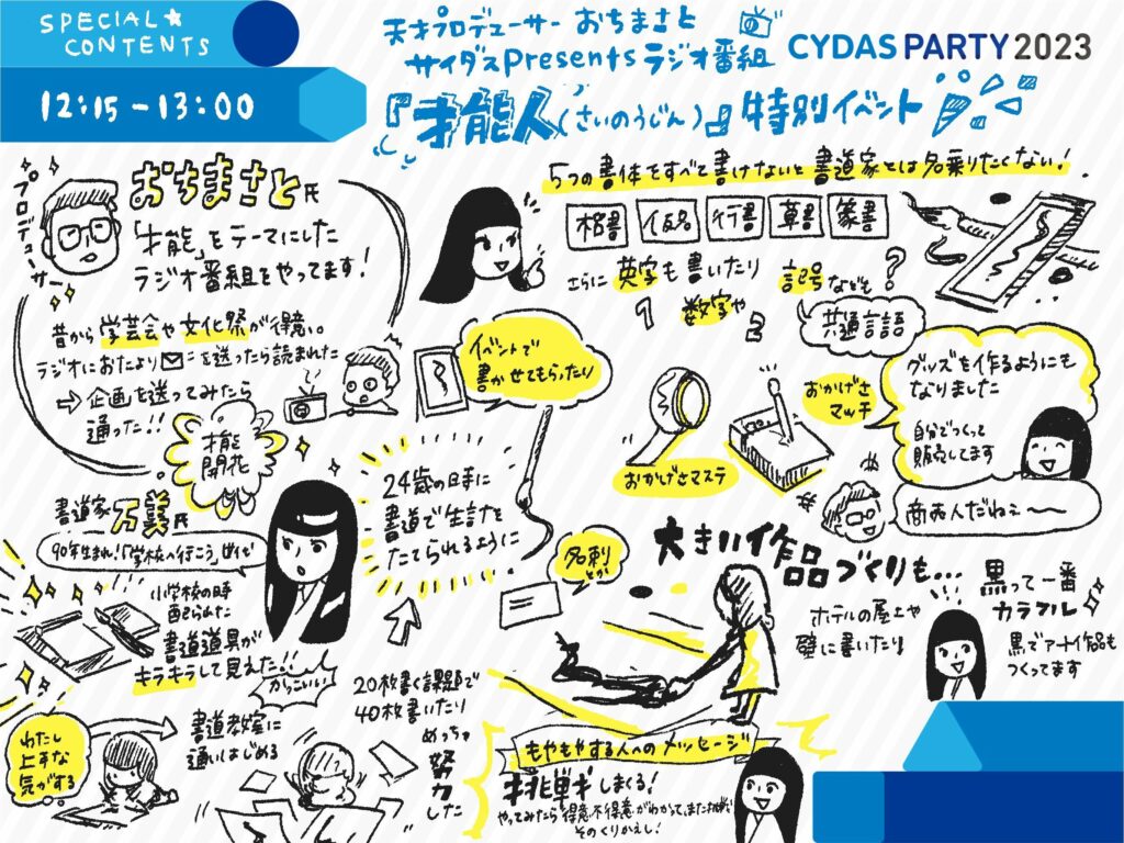 2023年9月15日、サイダス主催のリアルイベント「CYDAS PARTY 2023」において、「才能人」特別トークイベントを開催。世界各国を巡る書道家 万美さんと45分間の生対談を実施し、作品に込められた思いと彼女の才能の秘密に迫りました。
